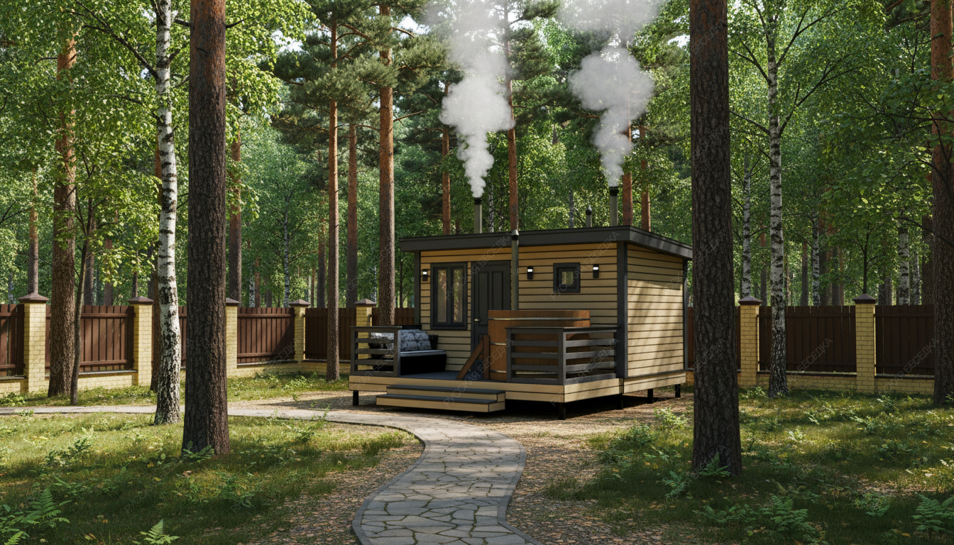 Баня «Аркадия» представляет собой компактное и продуманное до мелочей решение для ценителей традиционных банных ритуалов с элементами современного комфорта. Модель с открытой террасой эффективно использует пространство, создавая многофункциональную зону для отдыха и релаксации на свежем воздухе площадью 8,73 м².  Внутренняя планировка отличается рациональностью: объединенная парная-мойка (5,03 м²) с деревянным окном-форточкой обеспечивает правильный пар и удобство проведения процедур. Уютная комната отдыха (5,98 м²) становится теплым и гостеприимным местом для чаепития и общения после пара. Односкатная крыша и общие габариты (2,95х4,5 м + терраса 2,1х4,5 м) придают строению современный динамичный силуэт, гармонично вписывающийся в ландшафт.  Этот проект идеально подходит для участков, где важна оптимизация площади без ущерба для функциональности и атмосферы. Качество материалов и строительства гарантирует энергоэффективность, долговечность и создание той особой целебной среды, ради которой и строится настоящая русская баня.