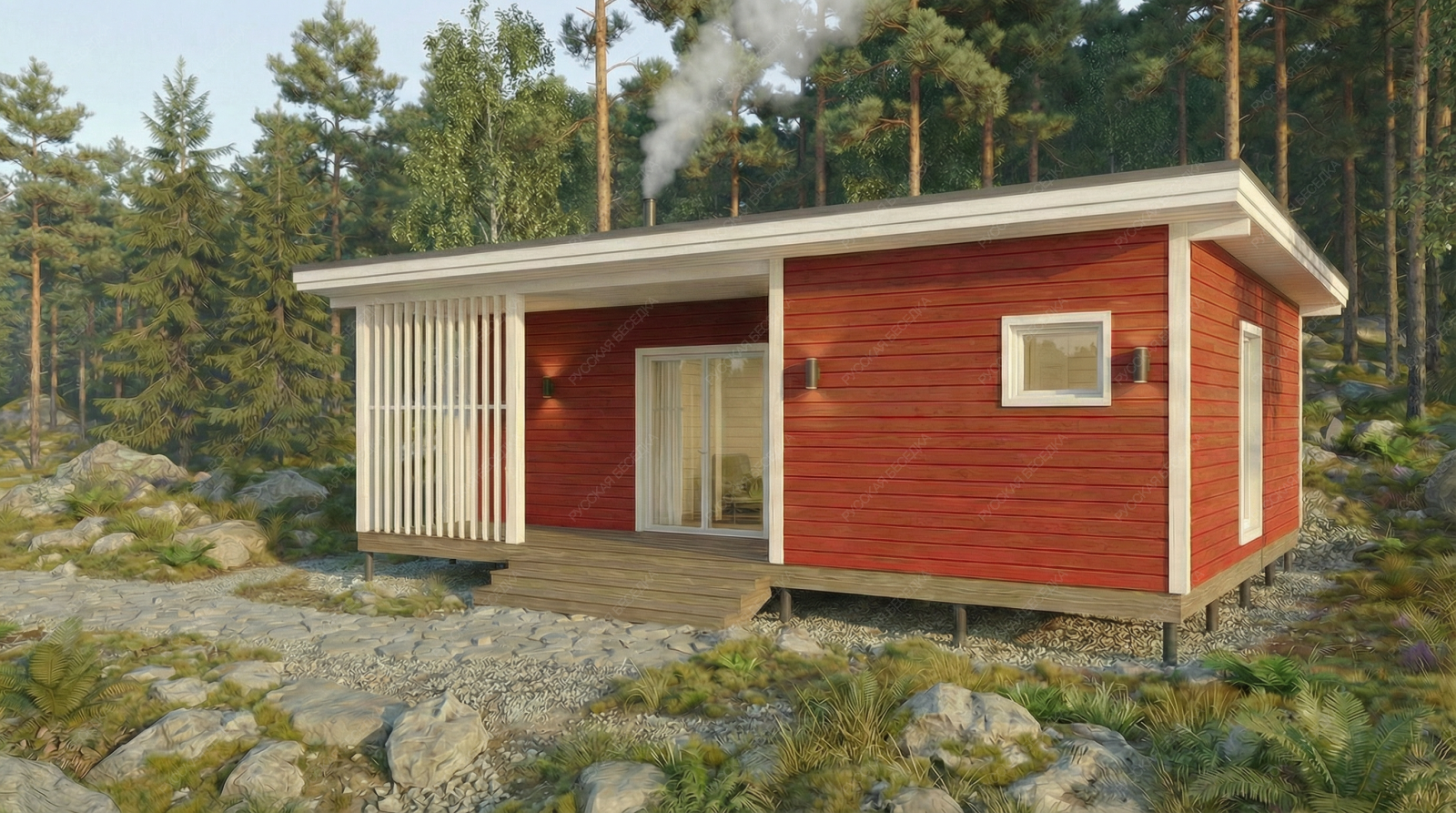 Огнебиозащита (бесцветная) или декоративный деревозащитный состав "Здоровый дом" (цвет на выбор) – нижняя обвязка, лаги, пол и цокольная доска.