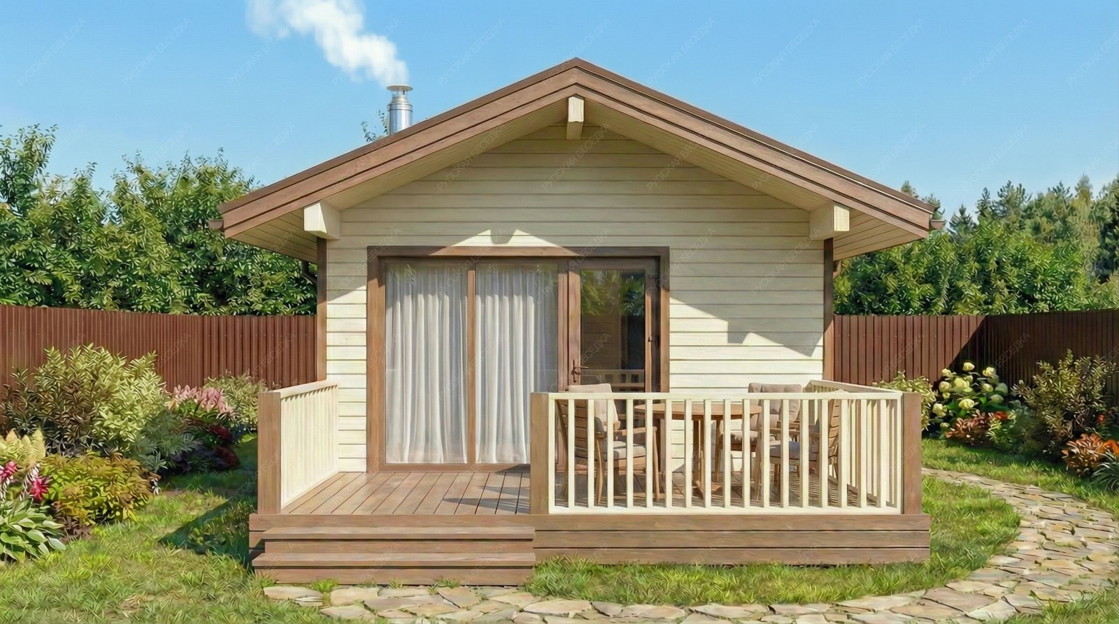 Огнебиозащита (бесцветная) или декоративный деревозащитный состав "Здоровый дом" (цвет на выбор) – нижняя обвязка, лаги, пол и цокольная доска.