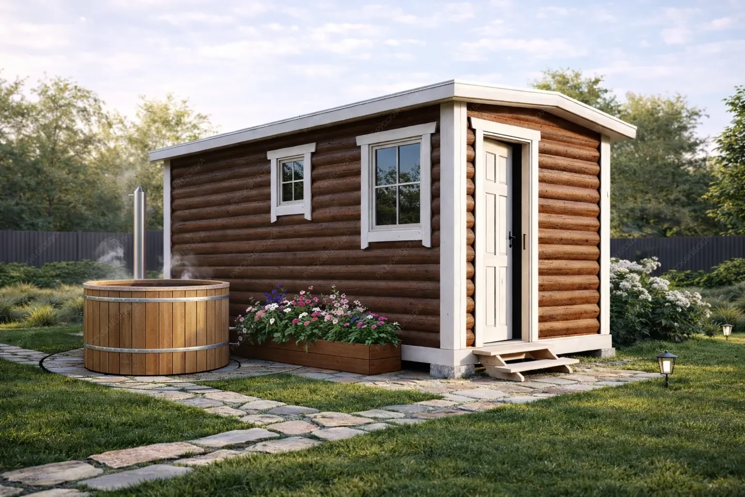 Мобильная баня «Вереск» размером 5x2.3 метра является наиболее компактным и экономичным решением в линейке, занимая всего 11.5 кв.м. площади. Двухскатная крыша сохраняет классический образ, несмотря на минималистичные габариты. Внутреннее пространство организовано с максимальной эффективностью: парная 4.22 кв.м., моечная 3.78 кв.м. и компактный предбанник 2.45 кв.м. формируют все необходимые зоны для полноценного банного цикла. Главное преимущество модели — ее исключительная мобильность и быстрота развертывания на любом подготовленном участке без сложных подготовительных работ. Такое решение идеально подходит для небольших территорий, используется в качестве временного или сезонного варианта, а также как дополнительная баня на уже обжитом участке. «Вереск» предлагает возможность наслаждаться всеми преимуществами частной парной там, где невозможно или нецелесообразно строительство капитального сооружения.