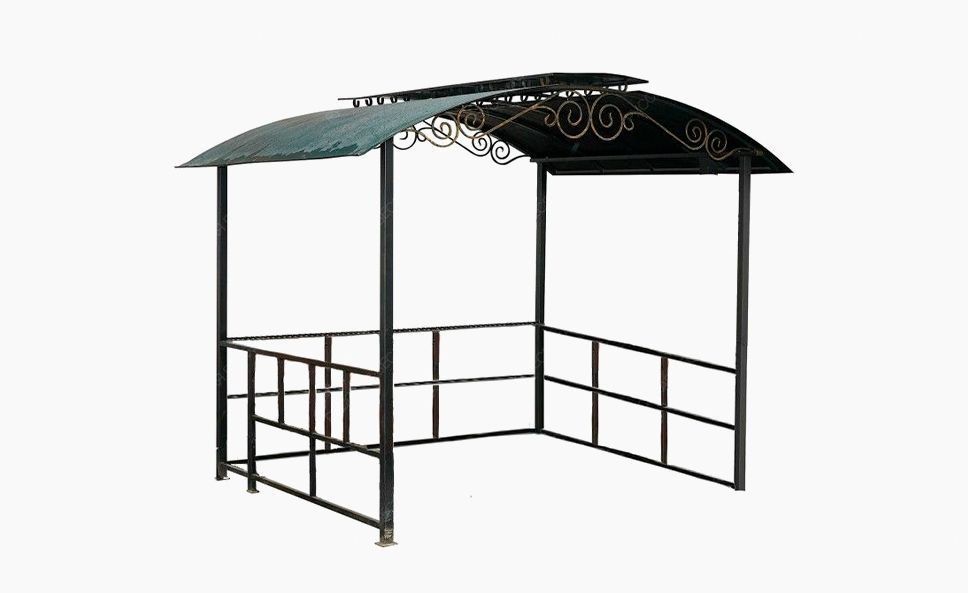Разборный большой навес-беседка для мангала и гриля с полукруглой тройной крышей. Для установки рекомендовано наличие специальной ровной площадки. Беседка изготовлена из профильных труб и украшена декоративными элементами. Под широкой крышей этого красавца Вы можете расположить не только свой любимый гриль или тандыр, но и дрова а также стол для разделки и нарезки.  Беседка Весенняя всегда спрячет Вас от непогоды-дождя и снега и даст возможность готовить Ваши любимые блюда на углях в любое время года.