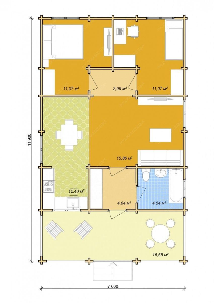 - Внешние размеры: 11,90x7x3,52 м