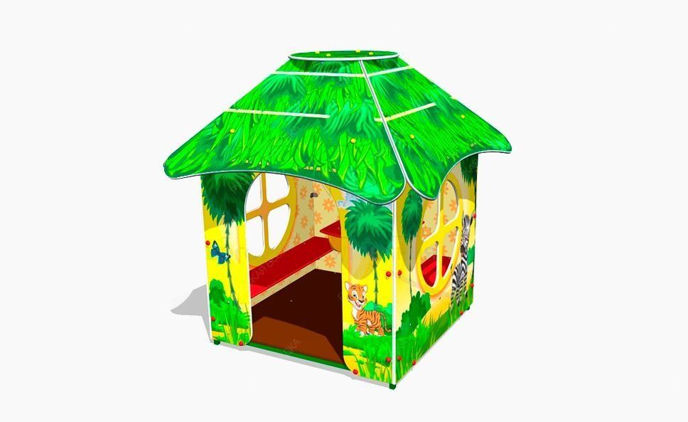 Детский игровой домик «Саванна У1» представляет собой металлический каркас пола, облицованный фанерными накладками. Рисунки на панели как снаружи, так и внутри домика, нанесены при помощи прямой УФ печати. Игровые домики используется для организации сюжетно-ролевых игр детей дошкольного возраста, развивает у них образное мышление любознательность и творческую инициативу. Данное оборудование предназначено для эксплуатации на детских площадках.