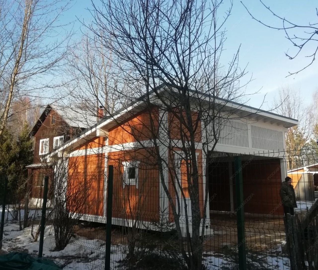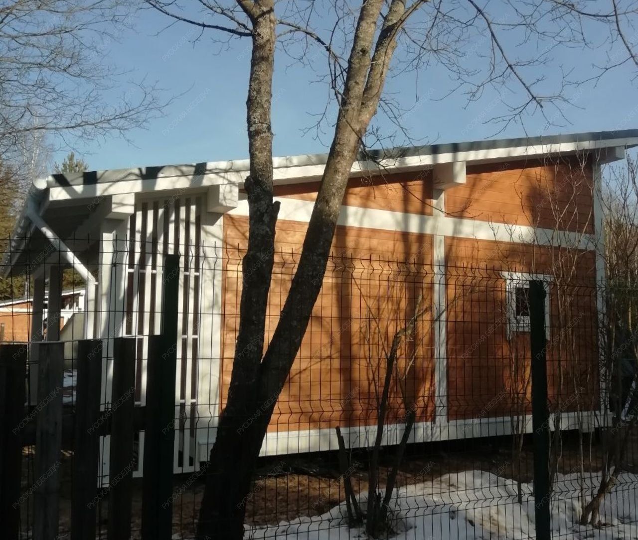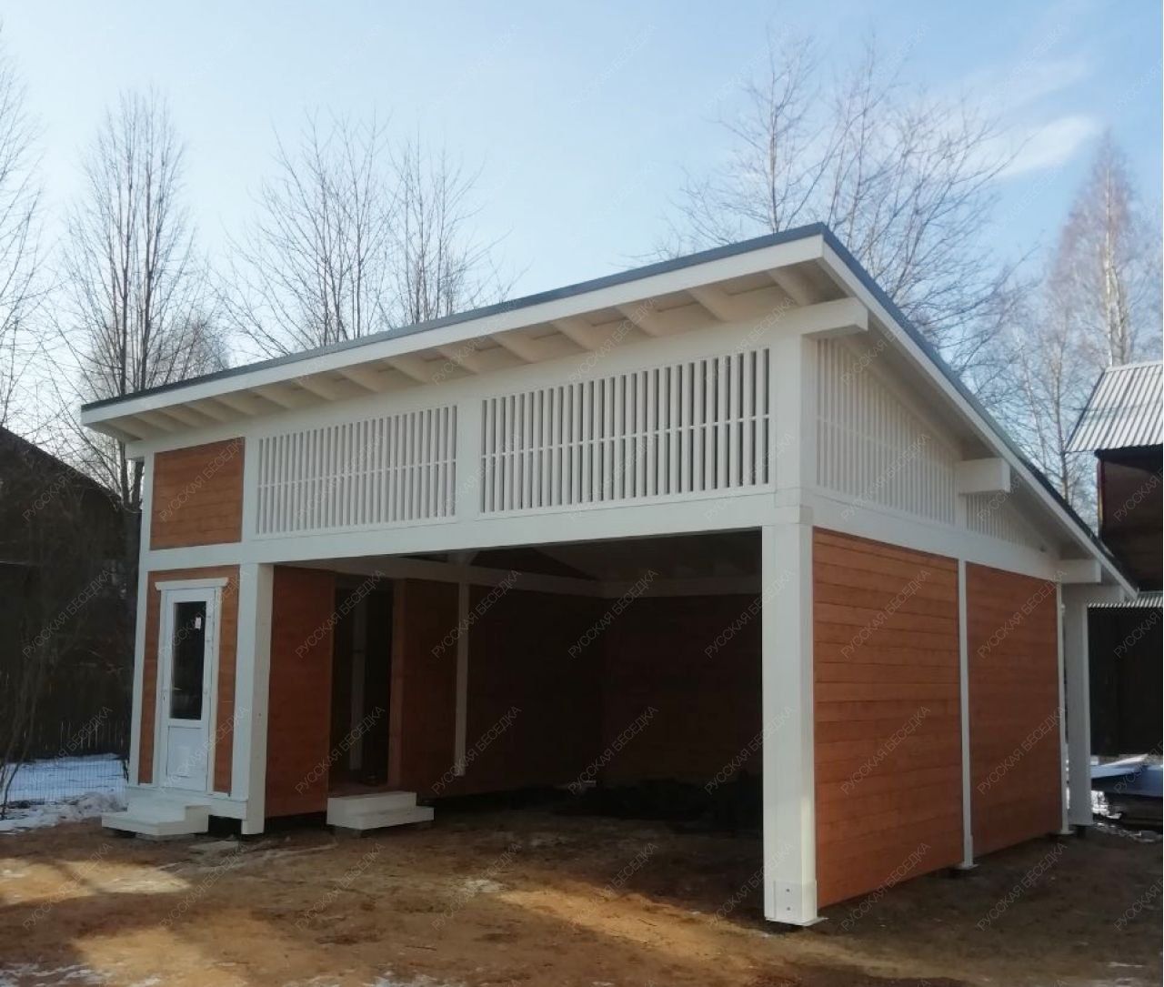 Конструкция изготовлена из хвойных пород древесины (ель, сосна). Материал — массив сухой строганый камерной сушки. *возможна замена на клееный брус