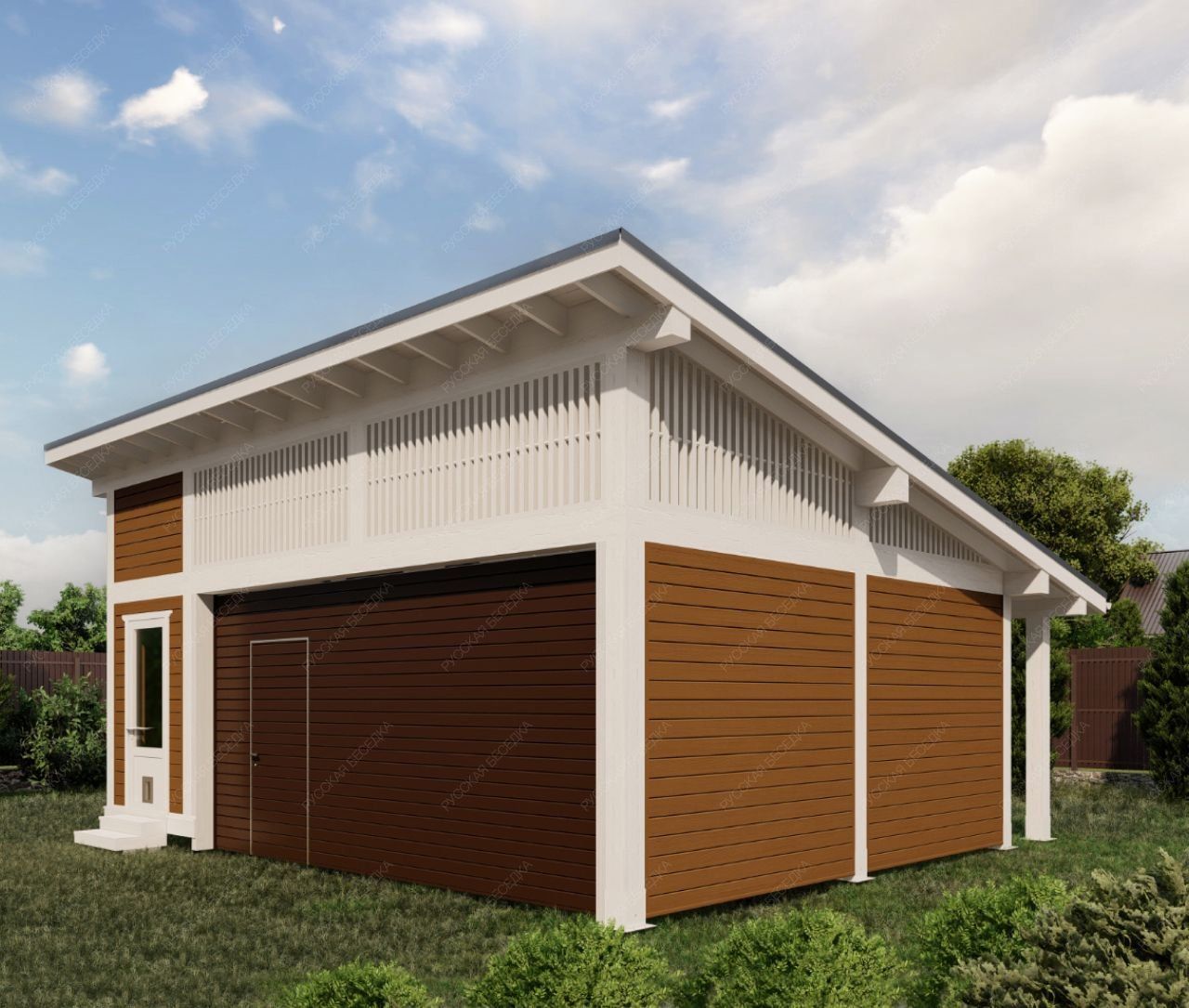 Деревянный гараж — это не только удобное и функциональное сооружение, но и отличная возможность дополнить архитектурный стиль вашего участка. Деревянные конструкции остаются вечной классикой, так как дерево — экологически чистый и натуральный материал. Одним из основных преимуществ деревянных гаражей является их доступная цена, что делает их более выгодным вариантом по сравнению с постройками из других материалов. При правильном строительстве деревянный гараж может служить десятилетиями, сохраняя все свои свойства и привлекательный внешний вид. Мы заботимся о качестве наших конструкций, обрабатывая древесину надёжными пропитками, которые защищают от гниения и плесени. Огнебиозащитные средства обеспечивают устойчивость к влаге, ультрафиолетовому излучению, перепадам температуры и другим атмосферным воздействиям. Кроме того, мы можем предложить утепление гаража, учитывая важность пароизоляции для сохранения тепла и защиты конструкции. Индивидуальное проектирование позволит вам точно вписать гараж в экстерьер вашего участка и оптимально спланировать внутреннее пространство для удобства использования. Создайте идеальное место для хранения вашего автомобиля и оборудования с нашим деревянным гаражом!