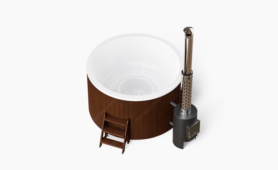 Благодаря объему 1800 л купель способна вместить аж 2 семьи — 8 человек! Это самая большая по объему воды купель в стране! Если вы хотите отнести печь подальше от купели и отделить персонал от гостей декоративной перегородкой, просто закажите удлиненные патрубки. Большая компания, много воды и позитива, смех и пузыри аэромассажа, бесконечные беседы и посиделки ночи напролет. Благодаря 72ч обжига древесины в печи при 95С, выгорает вся органика, поэтому дерево долго сохраняет форму и геометрию и не боится атмосферных осадков. Замкнутое в кольцо сиденье в купели Comfort 220 не закольцованное, поэтому на четверть круга есть большое пространство для плавания детей, что позволяет использовать купель в качестве микробассейна. Защитный кожух на дымоходе печи надежно защищает от ожогов со всех сторон, но при этом выглядит стильно и аккуратно.