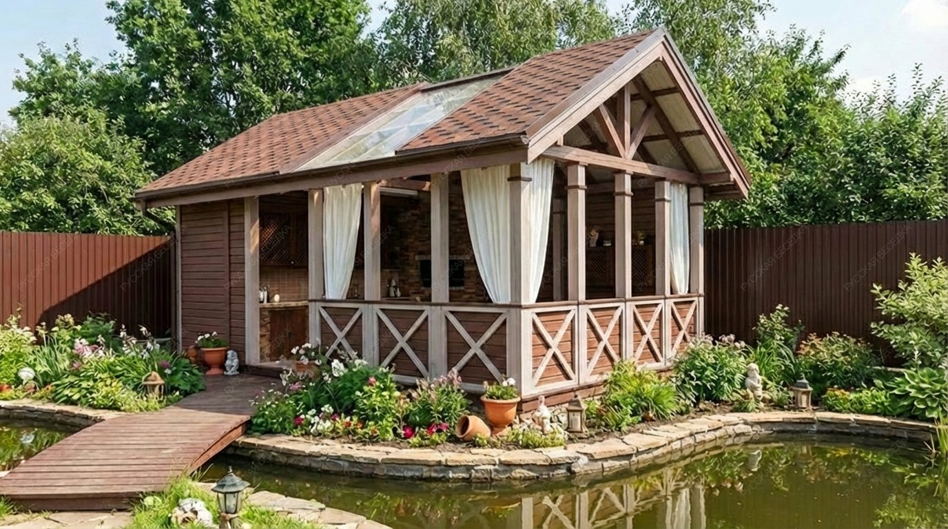 Летняя кухня станет не только функциональным и красивым дополнением к вашему участку, но и создаст атмосферу уюта для теплых вечеров в кругу семьи и друзей. Круглый год вы сможете радовать близких блюдами, приготовленными на открытом огне, а в сезон - заниматься заготовками овощей.
