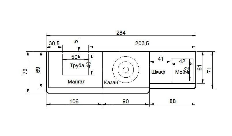 - шкаф с разделочным столом и мойкой (в шкафы можно встраивать бытовую кухонную технику);