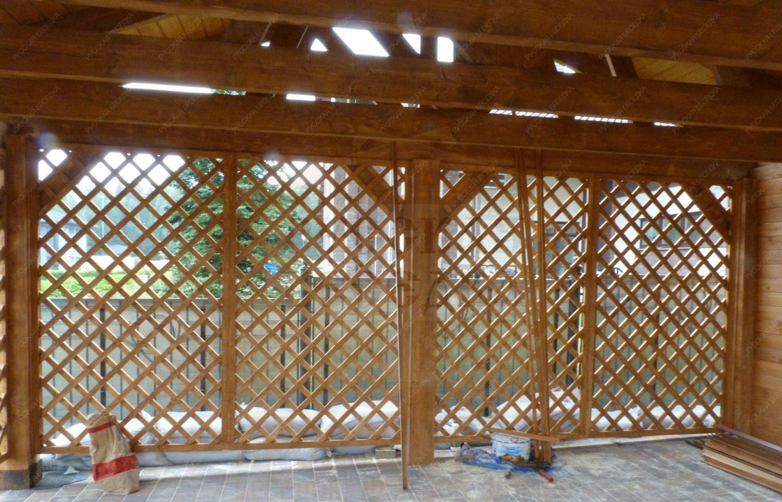 Для производства всех элементов навеса используется только отборная древесина без малейших дефектов, прошедшая камерную сушку и пропитку антисептиками. Навесу после защитной обработки лаком не страшны высокая влажность, а значит, можно быть уверенным, что дерево не растрескается, не разбухнет и не покоробится.