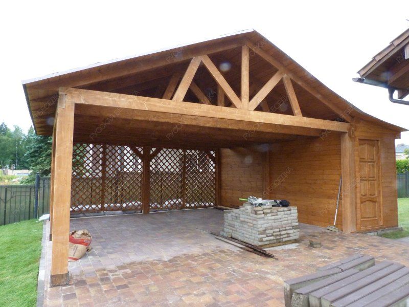 Навес из дерева послужит отличным парковочным местом для одного или нескольких автомобилей.