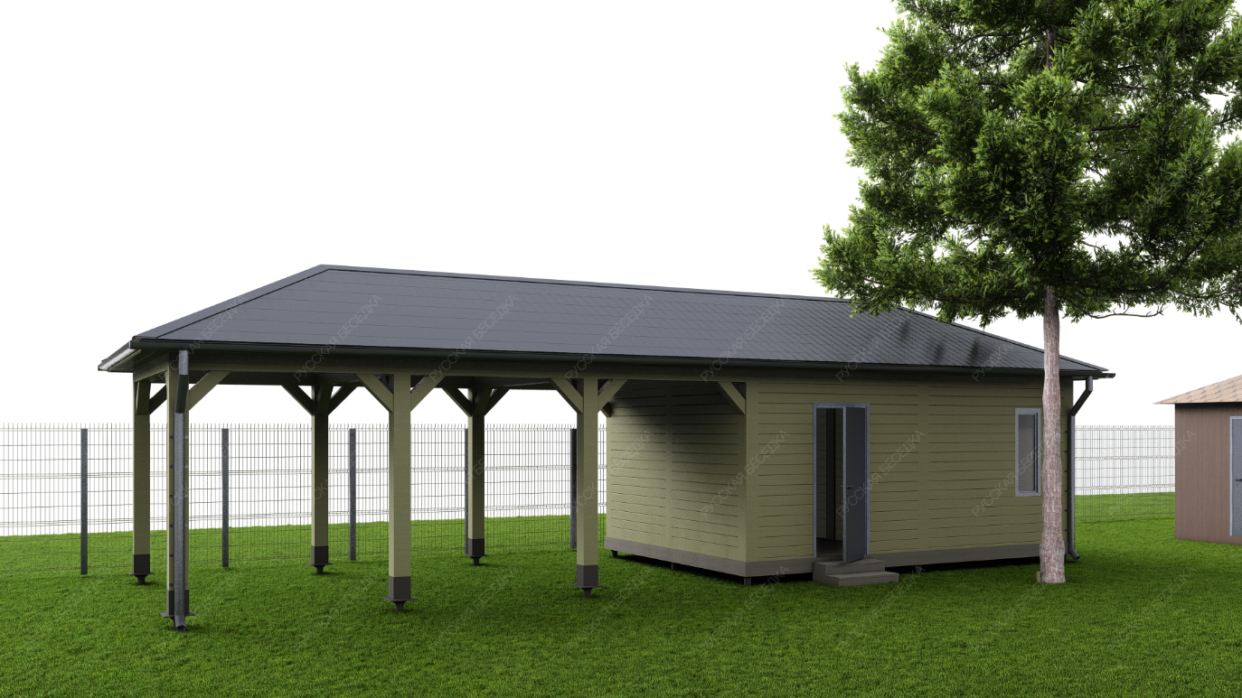 Навес из дерева послужит отличным парковочным местом для одного или нескольких автомобилей.