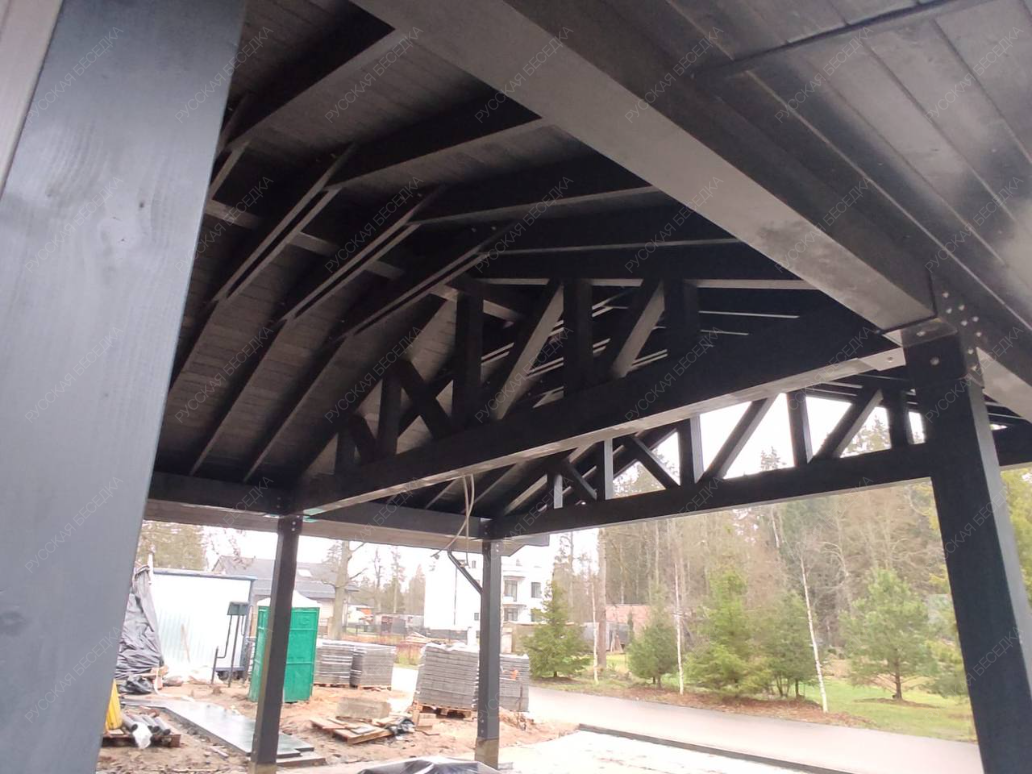 Для производства всех элементов навеса используется только отборная древесина без малейших дефектов, прошедшая камерную сушку и пропитку антисептиками. Навесу после защитной обработки лаком не страшны высокая влажность, а значит, можно быть уверенным, что дерево не растрескается, не разбухнет и не покоробится.