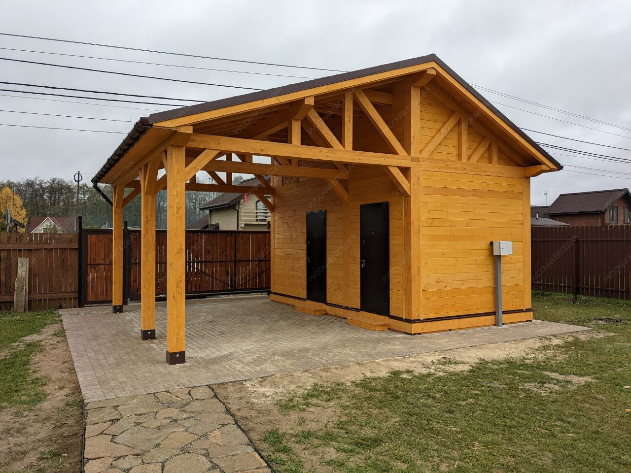 Навес из дерева послужит отличным парковочным местом для одного или нескольких автомобилей.