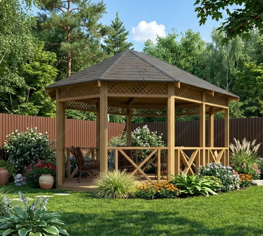 Как любой архитектурный элемент беседка должна отвечать трем основным требованиям – надежность, функциональность и красота. В зависимости от предпочтений владельцев участка и особенностей ландшафта будет определяться конфигурация строения. Наши специалисты помогут с выбором модели беседки, ее конструкцией и дизайнерским решением. Индивидуально для Вас мы разработаем визуализацию и проект конструкции, котрая станет центром внимания вашего участка.