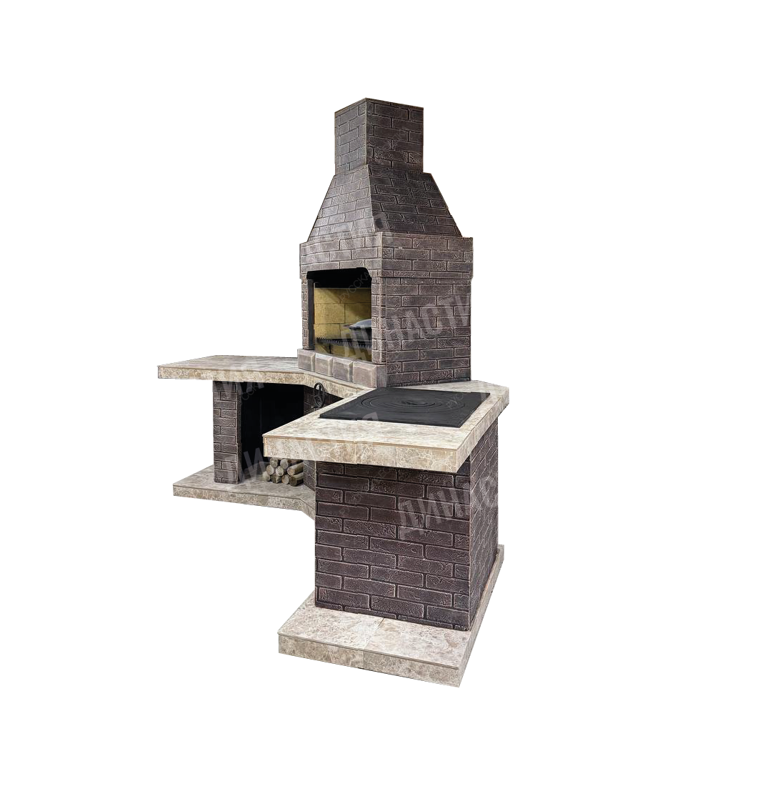Барбекю комплекс сделан из огнеупорного бетона.
