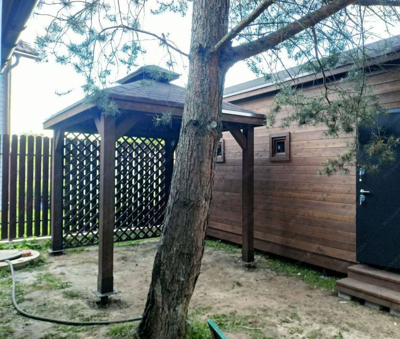 Пергола с навесом обеспечивает надежную защиту от солнечных лучей, создавая тенистое пространство для отдыха. Она станет идеальным местом для встреч с друзьями, чтения книг или приема пищи на свежем воздухе.