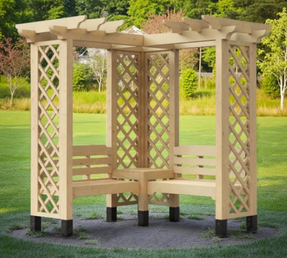 Перголы из дерева сочетают в себе природную красоту и современные дизайнерские решения, создают идеальное место для отдыха и различных видов досуга на открытом воздухе. Перголы могут стоять отдельно или быть частью композиции с другими элементами сада.