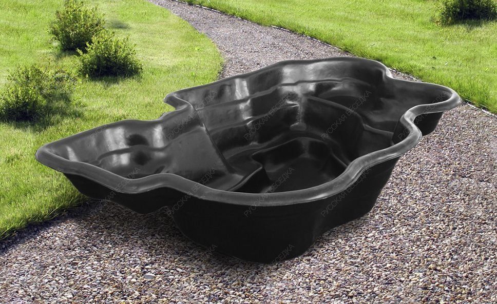 Пруд садовый пластиковый, 900 л, чёрный Устройте на даче искусственный водоём. Для этого отлично подойдёт пластиковый пруд. Он подчеркнёт красоту участка, создаст особую атмосферу и расположит вас к расслаблению и созерцанию. Преимущества пруда из пластика: сделан из полиэтилена низкого давления толщиной от 4 до 7 мм, который выдерживает температуры от –55 до 55 °С; в нём можно освежиться жарким днём; гладкая поверхность не травмирует вашу кожу во время купания; пруд из гигиеничного пластика просто очищать от загрязнений; легко транспортировать из-за небольшой массы. Как установить пруд: Перенесите на грунт контуры чаши. Выкопайте котлован, придерживаясь очерченных границ. Дно должно быть горизонтальным и без уклонов. Опустите форму в котлован. При необходимости подсыпьте грунт. Уложите на дно ямы слой песка толщиной около 5 см. Наберите в форму воду, утрамбуйте при этом песок.