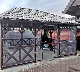 Беседка выполненная из лучших пород древесины, прослужит долгие годы и не потребует особого ухода и обслуживания. Специальные лакокрасочные материалы которые мы используем, предотвратят старение, гниение и заражение грибком конструкции кухни. Используемая огнебиозащита образует полупрозрачное полуматовое покрытие, стойкое к влаге, УФ-излучению, перепадам температуры и другим атмосферным воздействиям.