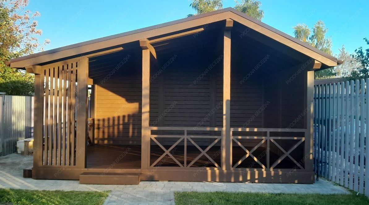Беседка выполненная из лучших пород древесины, прослужит долгие годы и не потребует особого ухода и обслуживания. Специальные лакокрасочные материалы которые мы используем, предотвратят старение, гниение и заражение грибком конструкции кухни. Используемая огнебиозащита образует полупрозрачное полуматовое покрытие, стойкое к влаге, УФ-излучению, перепадам температуры и другим атмосферным воздействиям.