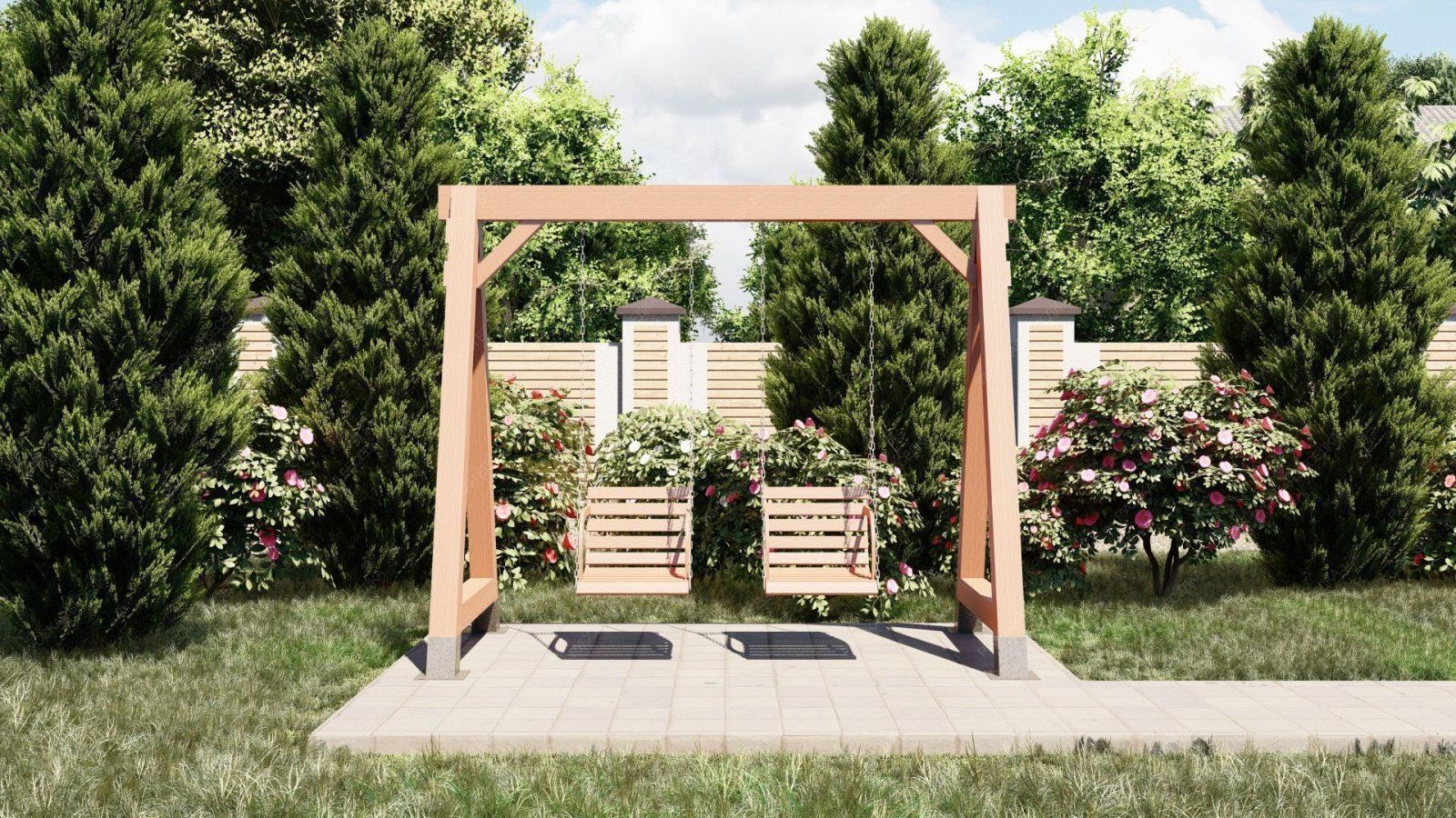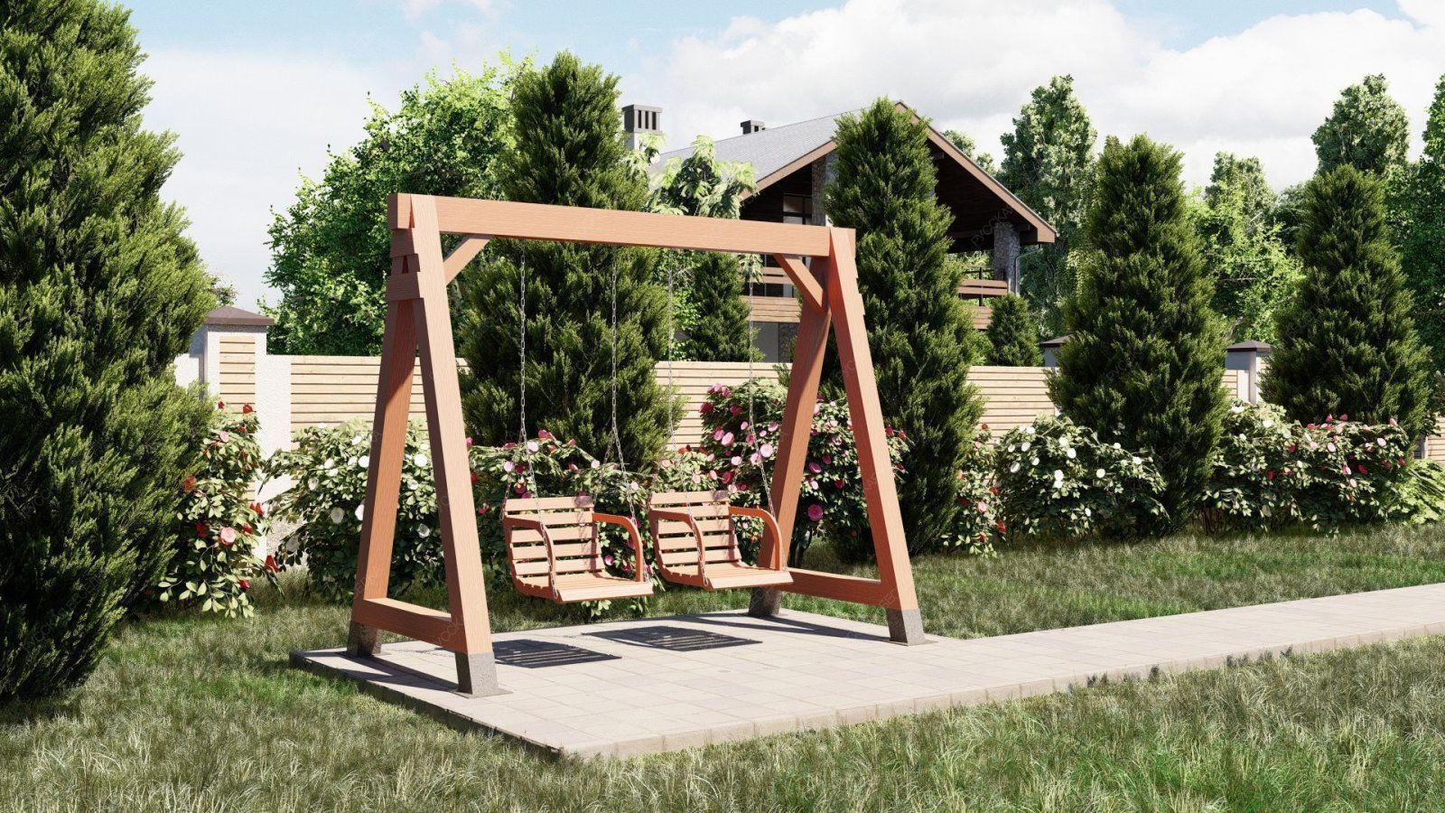 Эти качели идеально вписываются в ландшафт вашего участка, добавляя ему стильный и современный акцент. Они станут любимым местом для всей семьи, где можно провести время в общении и отдыхе.