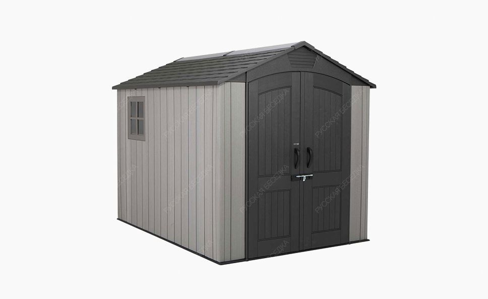 Пластиковый сарай среднего размера Woodlook 7`x 9,5` площадью 5,34м2 Вместительный, быстро и легко собирается, удобен в транспортировке.  Сборные пластиковые сараи от компании Lifetime отвечают высоким требованиям потребителей: Многофункциональность – вместительный хозблок-сарай, гараж для техники. Войдет все: мангал, газонокосилка, бензопила, грабли, лопаты и многое другое Эстетичность – фасад сарая на 100% имитирует дерево, технология Rough Cut. Украсит любую территорию. Практичность – легко мыть, не требуют ухода, не подлежит покраске, не выцветает, не боится влаги и снега, не деформируется Прочность – технология «BLOW MOLDED» - увеличивает прочность при том же количестве пластика в 2 раза, армированный каркас выдерживает высокие нагрузки. Woodlook прочнее своих аналогов в 2 раза, выдерживает снеговую нагрузку – до 500 кг. Повышенная теплоизоляция за счет воздушной прослойки между стенками Освещенность – световой конек и 2 окна в фасаде сарая освещают весь инвентарь Чистота - пол не скользит и устойчив к маслу и пятнам Удобство – полки, крючки для оптимального размещения инвентаря и другие аксессуары Вентиляция – отведение влаги - отсутствие грибка Безопасность – надежная защита от взлома Компактность – удобен в хранении, т.к. упакован в коробки с оптимальным весом Мобильность – собирается и разбирается без специальной подготовки, лёгок в транспортировке и перемещении по территории в отличие от стационарного сарая  Модель уличного сарая-хозблока Woodlook 60310 (1,98м х 2,70м) собирается за считанные минуты. Варианты применения дачного пластикового сборного сарая Lifetime: Спрятать туалет Садовый домик для коммуникационных систем (например, разместить насосную станцию, колодец с водой, установить резервуар с водой и системой полива растений) Культурно спрятать автономную электростанцию, генератор, компрессор, газовый баллон, а также избавиться от лишнего шума специального оборудования. Хранение оборудования для бассейнов Хранение садовой мебели. Спрятать на зиму столы, стулья, кресла, гамаки, лежаки и многое другое, позволит этот вместительный пластиковый сарай. Для овощной ямы, подземного хранилища. Данный домик не только сделает культурным вход в яму, но и защитит от снега и дождя. Хранение инвентаря для уборки, чистки бассейна, использование в качестве хранилища для строительных материалов. Хранение хозинвентаря - самое популярное применение. Грабли, лопаты, ведра, лейки, шланги, бочки, насосы, лестницы и многое другое найдут свой уютный дом. Хранение садовой техники: мототехники, квадрациклов и ГСМ. Быстро сборный гараж для минитрактора. Эти большие механизмы всегда трудно куда-либо спрятать. Гараж для хранения велосипедов, самокатов, санок, снегокатов, лыж, сноуборда и прочего спортинвентаря. Мастерская. Организация собственной столярной мастерской с хранением инструментов, станка, приспособлений, верстака и заготовок. Сарай для дров. Всегда сухие и аккуратно уложенные дрова в специальном помещении - это еще и удобно, практично и эстетично. Домик для садоводства. Хранение горшков, кашпо, грунта, дренажа, семян, инструмента и прочей утвари для садового хозяйства.
