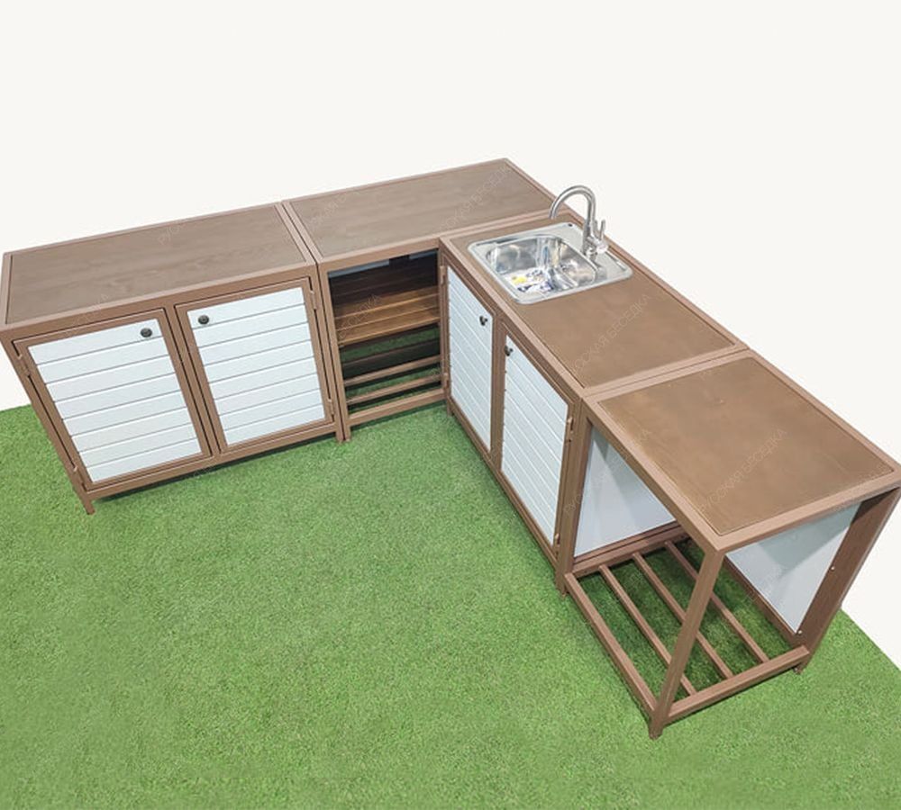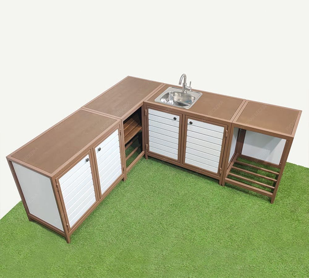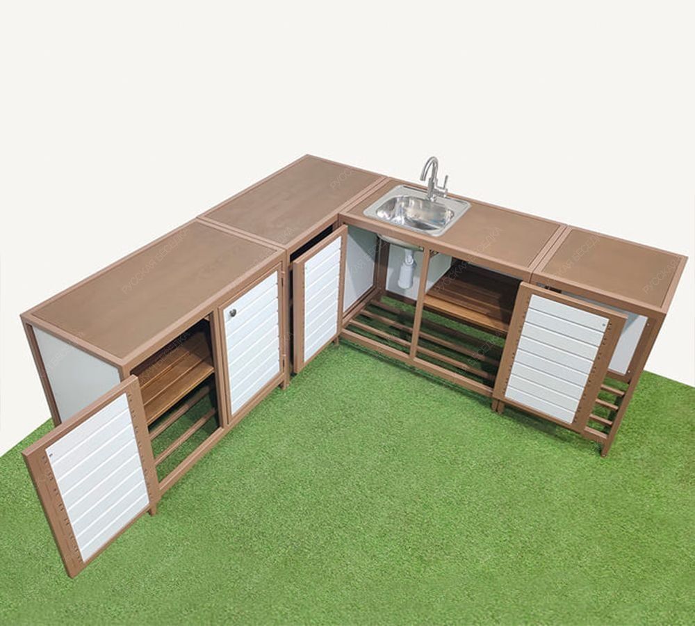 Всепогодный, угловой кухонный гарнитур.