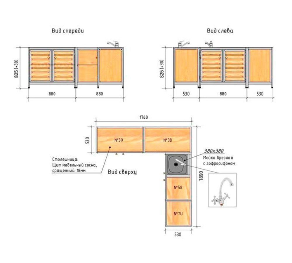 Модули выполняют функцию разделочного пространства и установку раковины. Ниши модулей - это вместительные шкафы для хранения кухонной утвари.