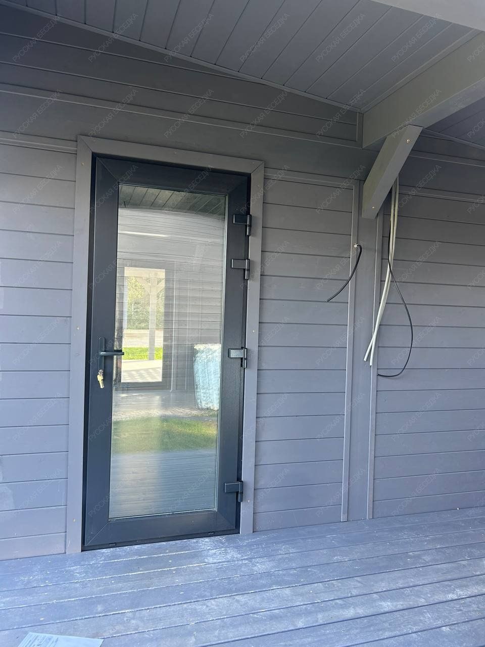 Раздвижная алюминиевая система. Окна в бронировочной пленке. Цвет пластика белый или коричневый.