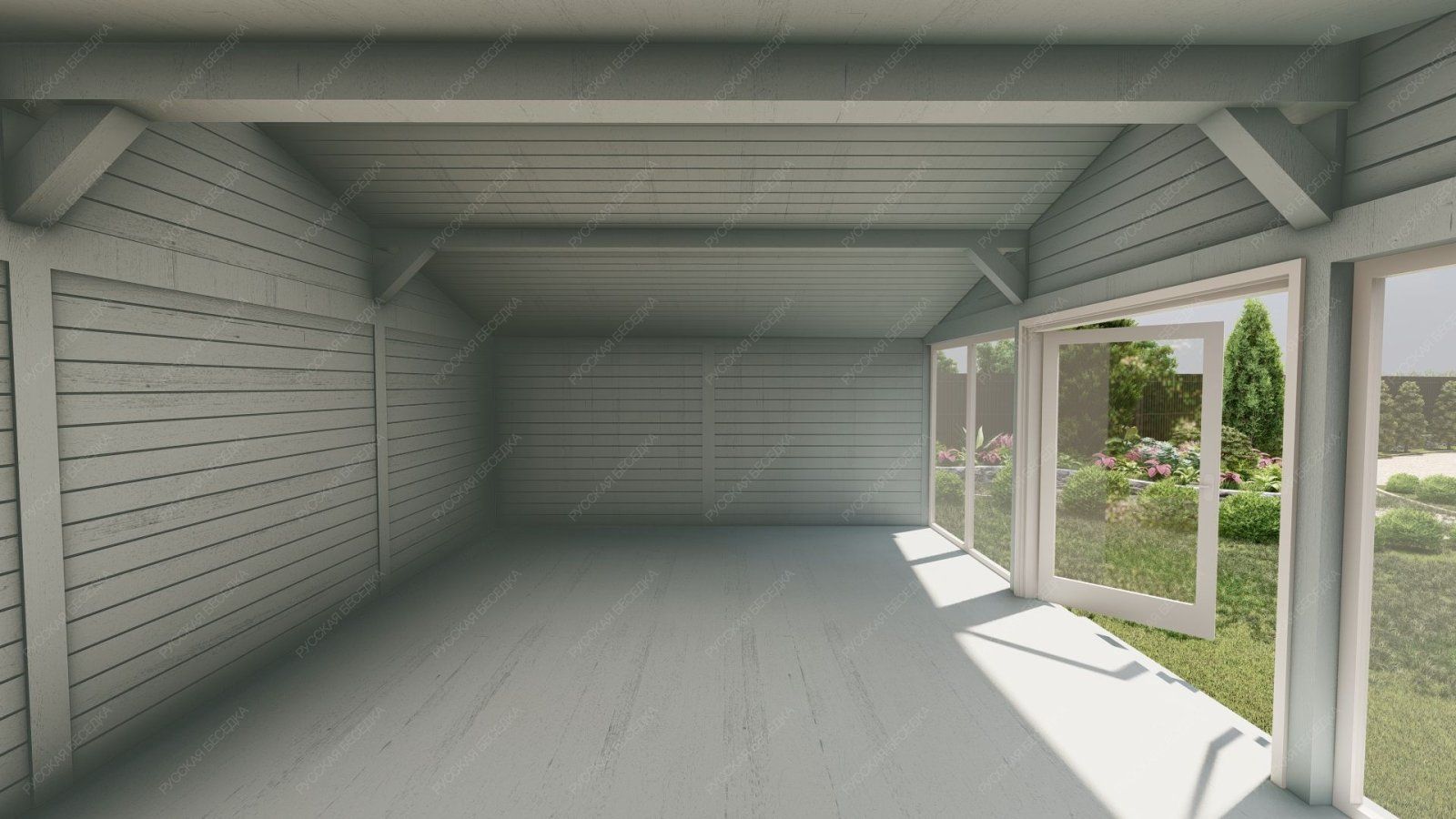 Застекленная утепленная беседка ЛИДЕР 5,3х7,3