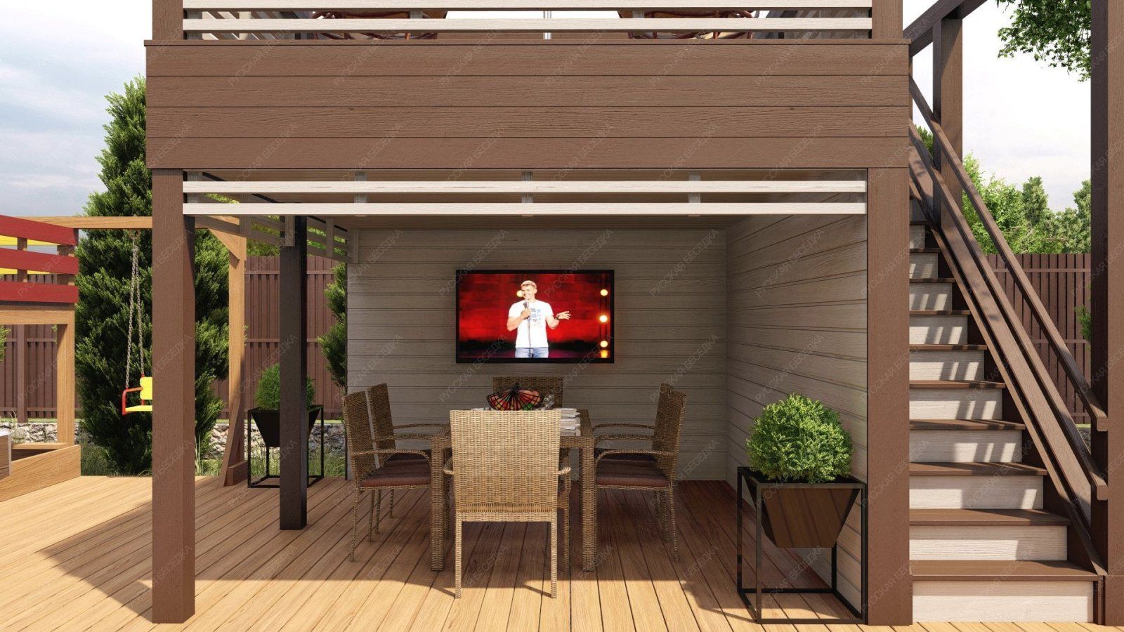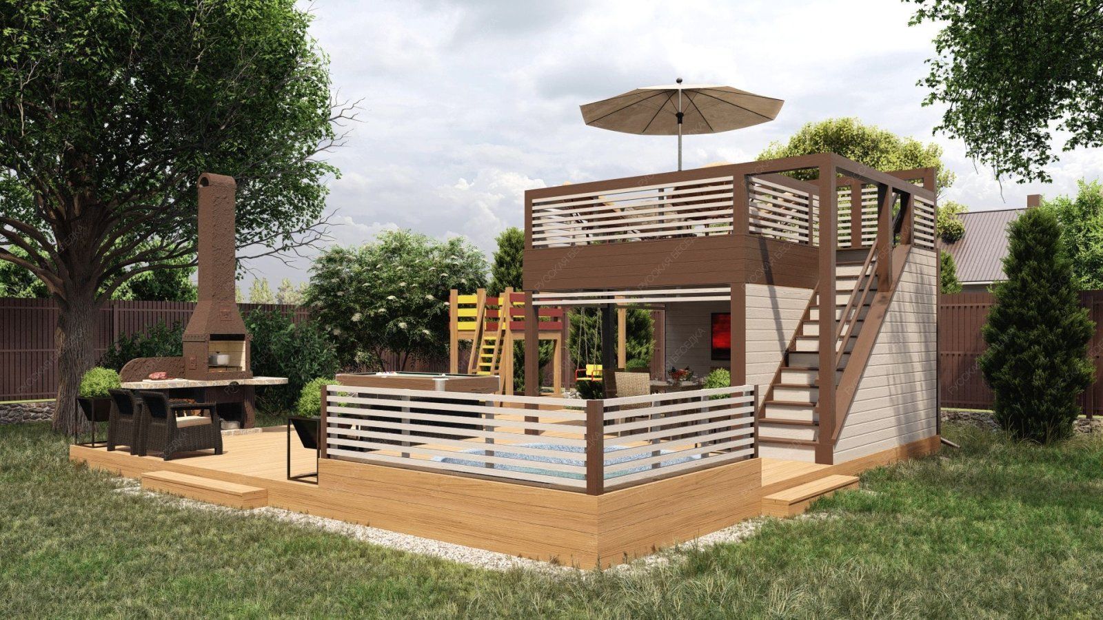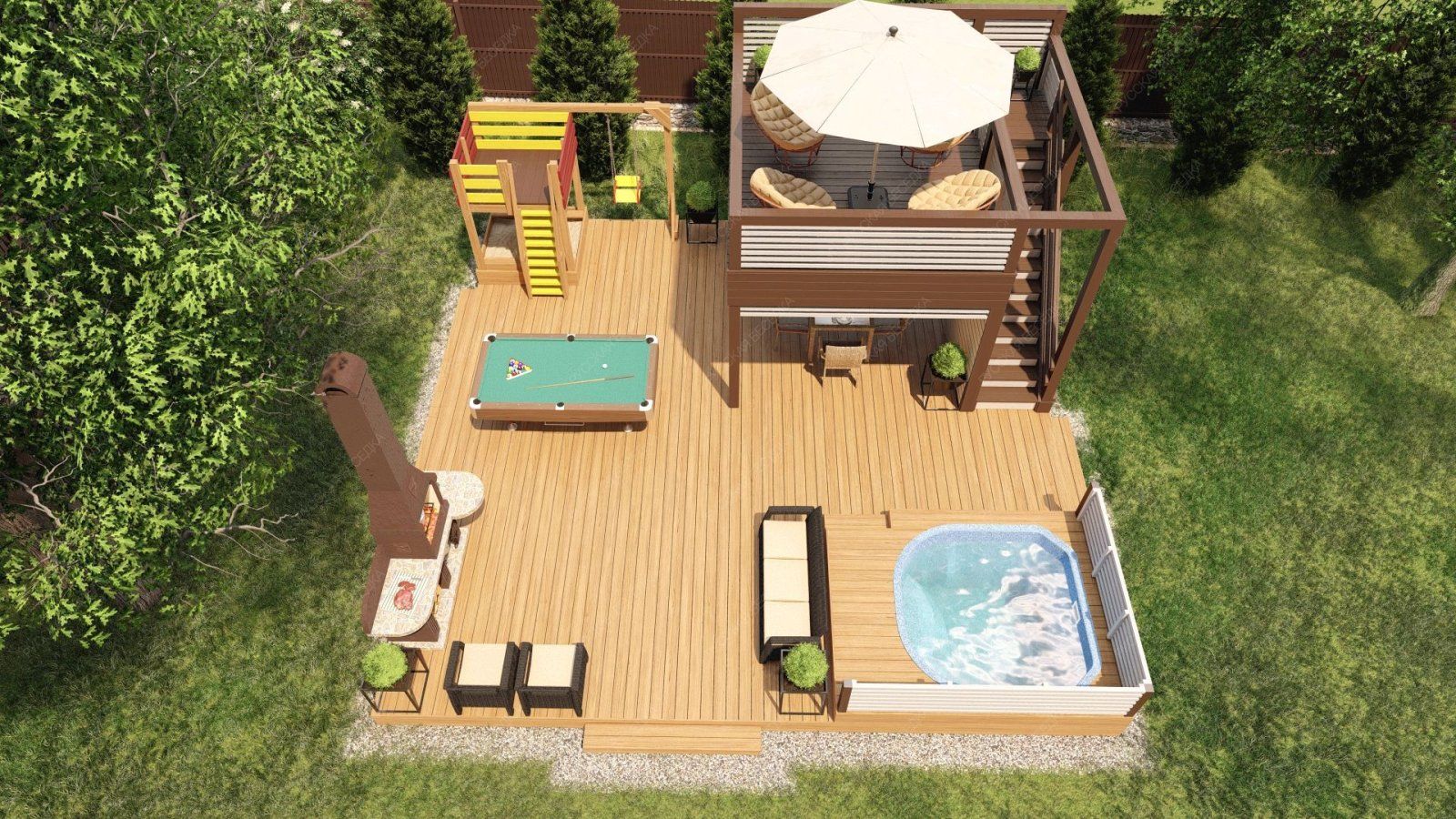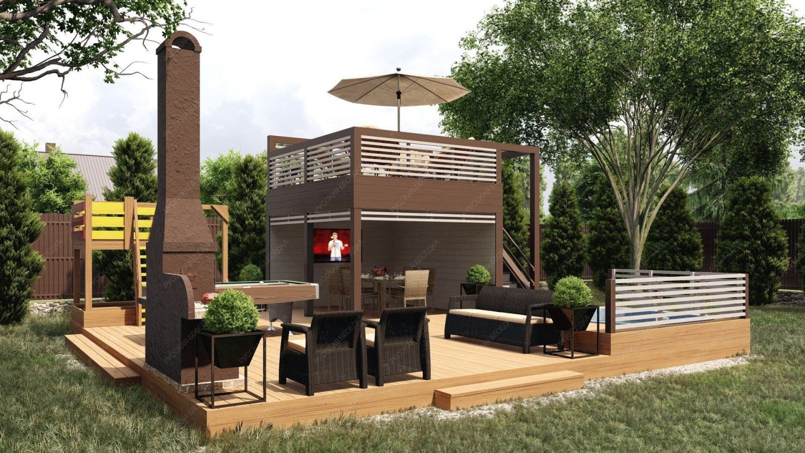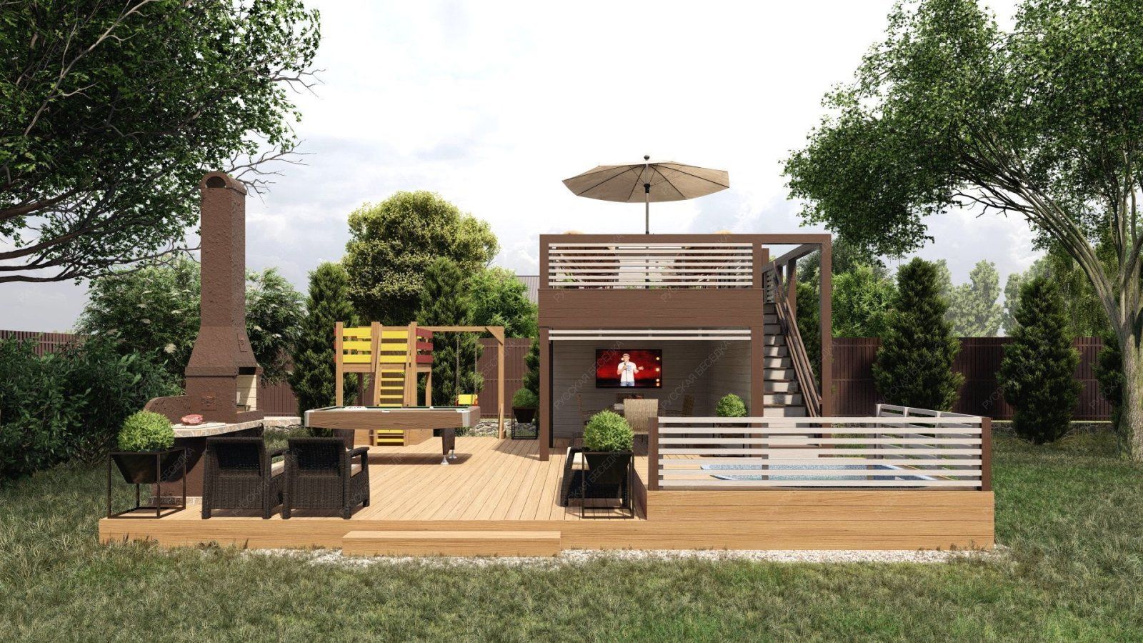 Отличительной особенностью зон отдыха является их многофункциональность: вы можете готовить на просторной веранде, организовать обеденную зону под навесом или в закрытой части, расположить летний кинотеатр под открытым небом, интегрировать в конструктив террасы бассейн или детскую площадку.